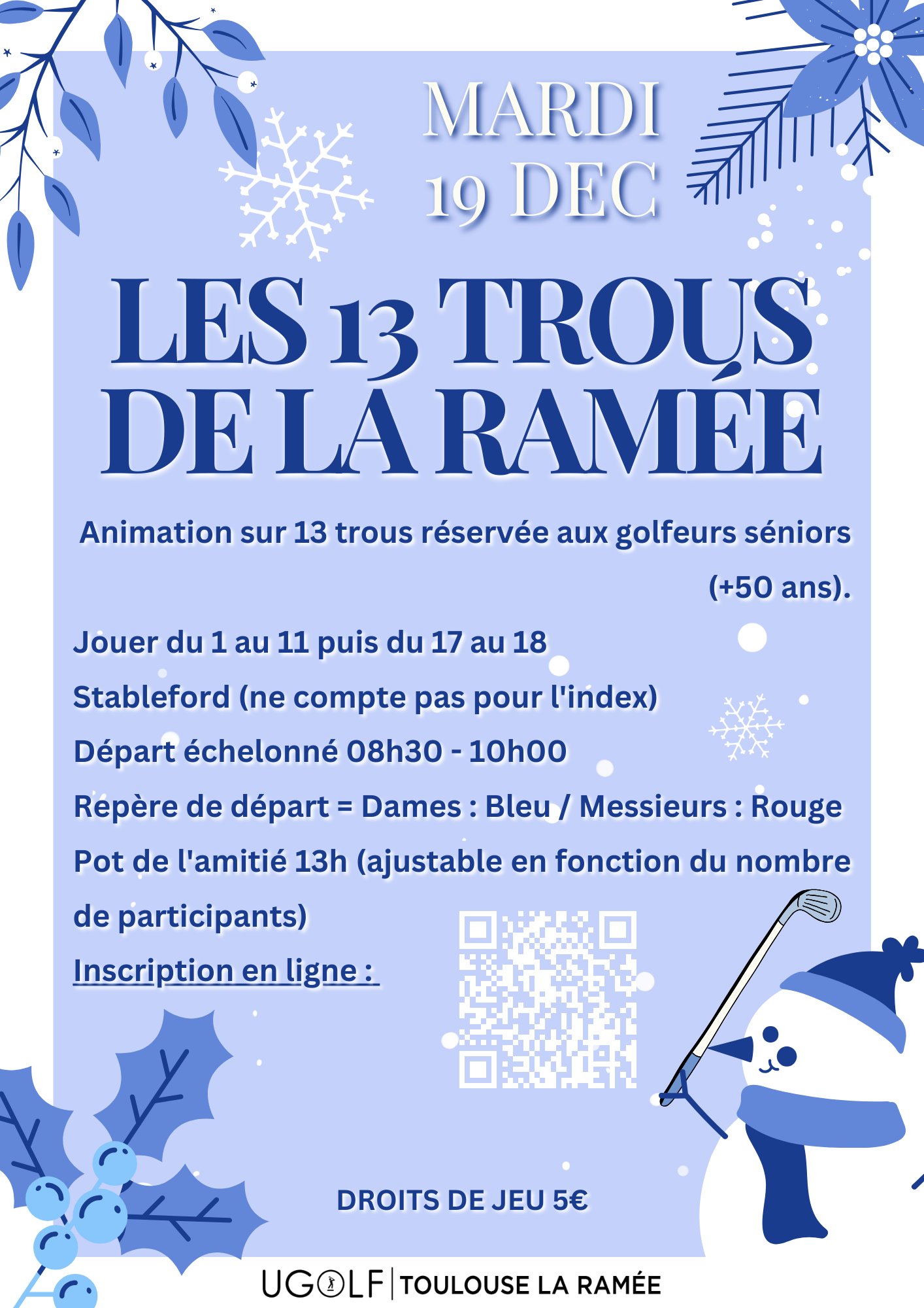 Nous vous proposons pour la première fois une animation sur 13 trous, réservée aux golfeurs et golfeuses séniors (+50 ans).